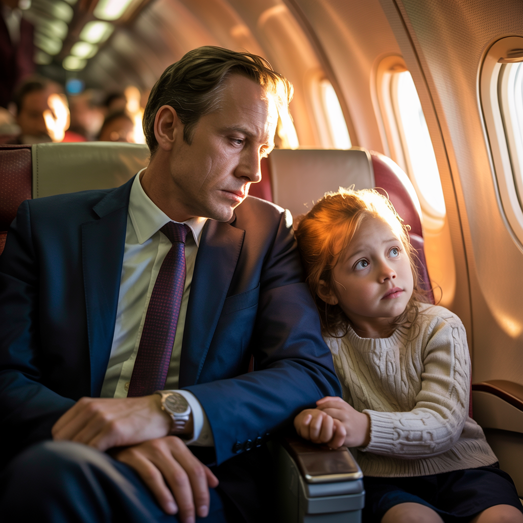 Suddenly, the plane jolted, and the lights flickered. Lila clutched her teddy bear tightly, her eyes wide with fear. Alejandro instinctively reached out, placing a reassuring hand on her shoulder. “It’s okay, Lila. We’re going to be fine,” he said, his voice steadier than he felt.