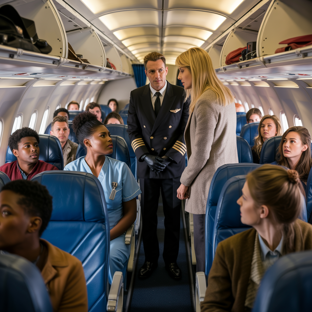 Every head turned toward the front of the plane. The pilot stood there, tall and composed in his crisp uniform, his expression unreadable. His presence commanded respect, and the atmosphere shifted once more, this time toward something more profound.