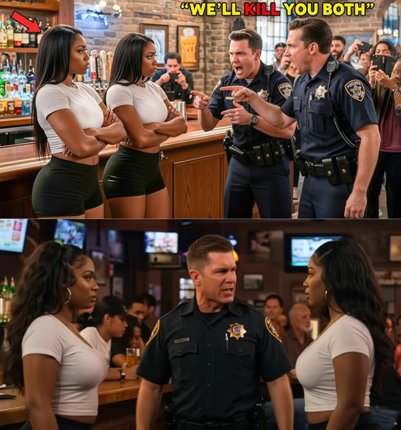 In a flash, chaos erupted. The sisters fought back, leveraging their training to defend themselves against the officers’ aggression. The bar patrons watched in shock as the twins, once seen as victims, turned the tables on their assailants. The officers, caught off guard, stumbled under the sisters’ fierce retaliation.