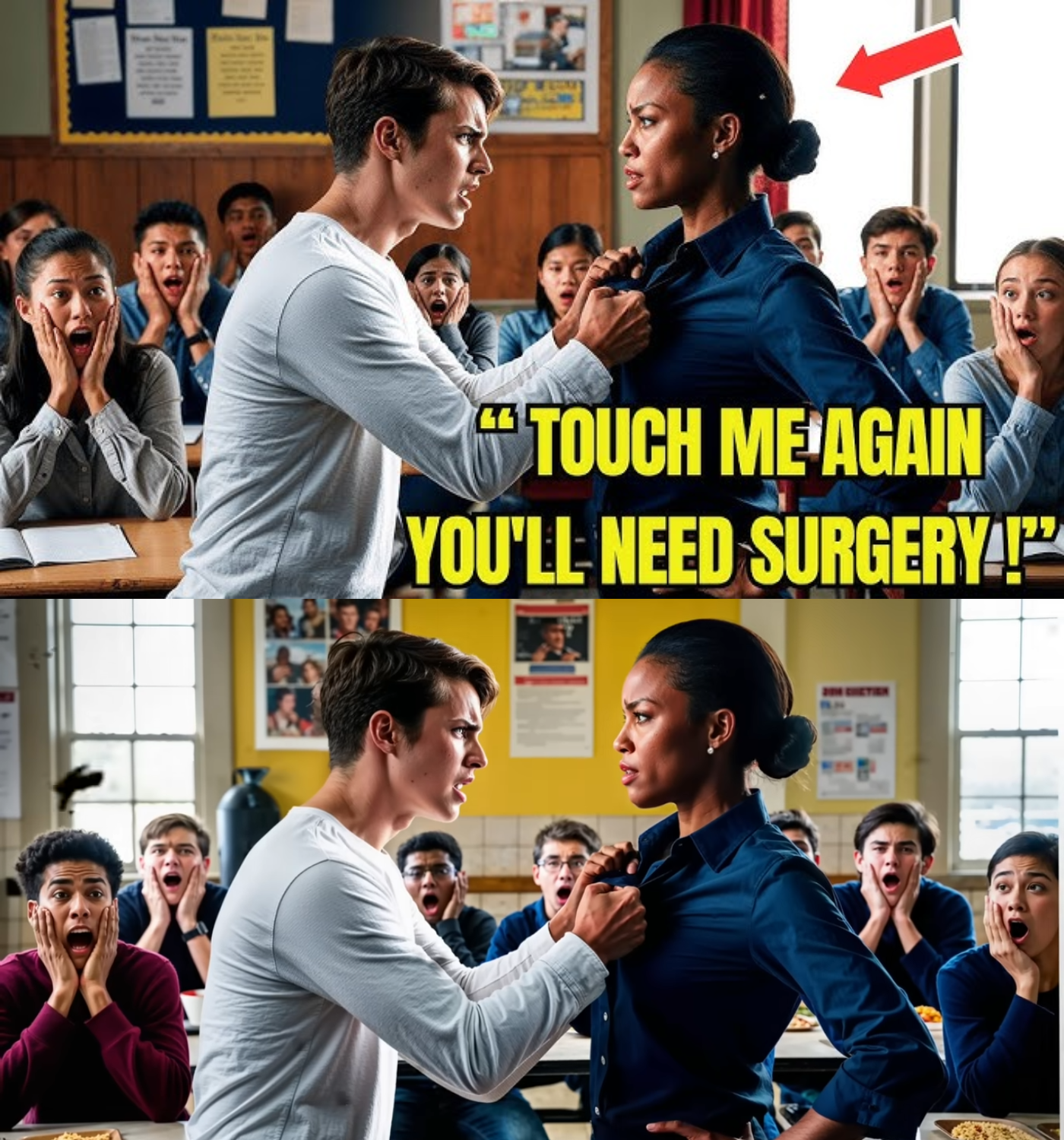 On her very first day at Milstone High, Alicia Johnson, a passionate teacher, stepped into a world that seemed determined to crush her spirit. The cafeteria buzzed with the chaotic energy of students, but it was a different kind of chaos that awaited her. As she walked in, a group of wealthy bullies, led by the arrogant Cole Whitmore, targeted her. They tore her shirt, and the mocking laughter of hundreds echoed around her. It was a moment that could have shattered anyone’s confidence, but Alicia was not just any teacher.