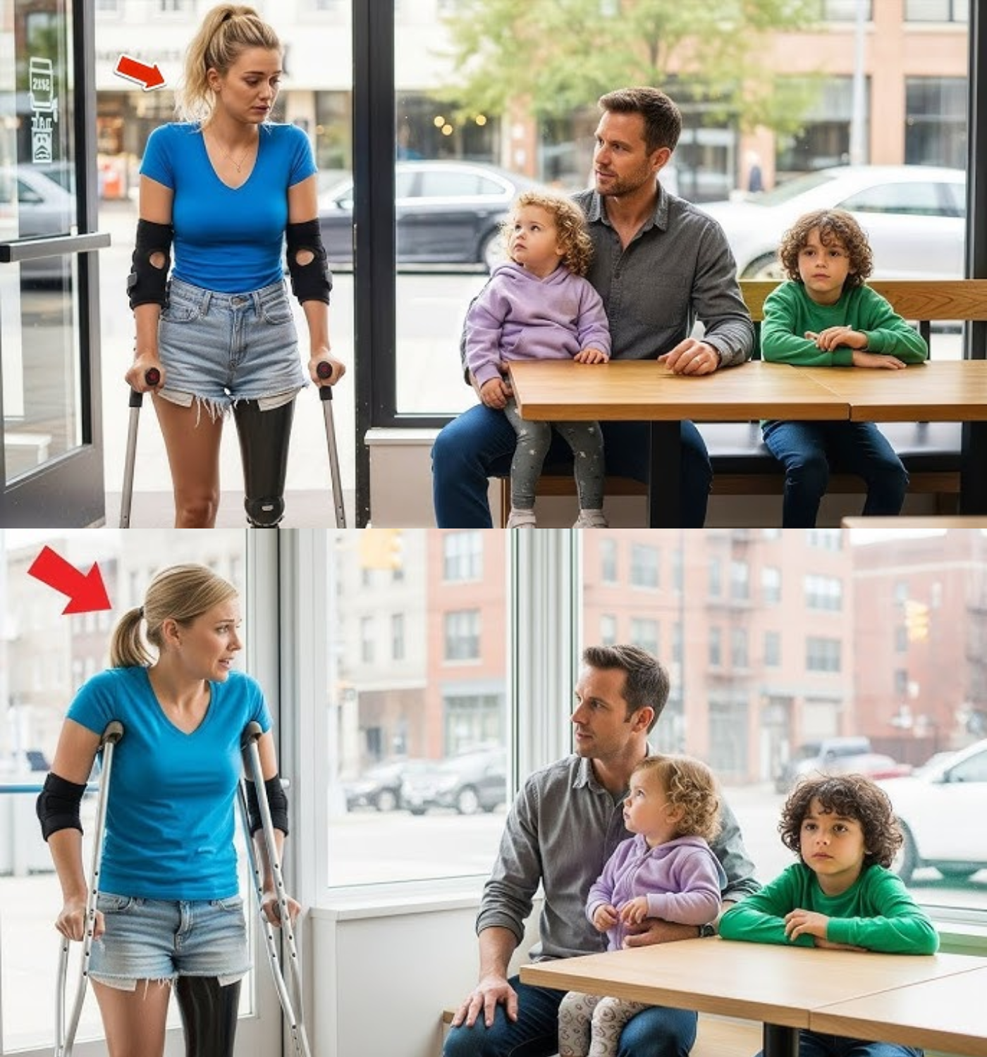 On an ordinary, rainy afternoon, a moment unfolded in a busy cafe that would forever change the lives of those involved. The atmosphere was typical for such a place—people hurried in, shaking off umbrellas and brushing droplets from their coats. Among them stood a girl named Mara, who was not just another face in the crowd. At just 12 years old, she balanced awkwardly on a prosthetic leg, her crutches trembling slightly as she scanned the room for a place to sit.