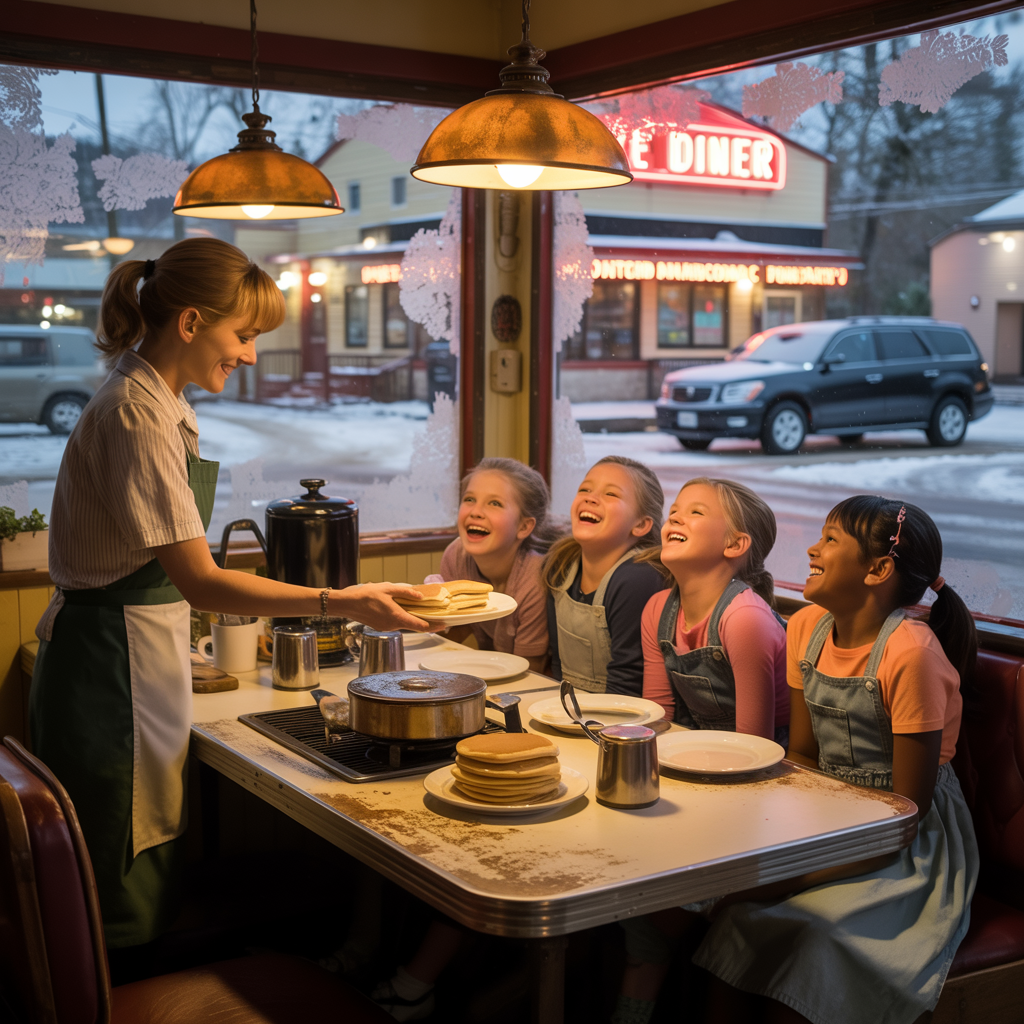 Emily’s heart swelled with pride as she watched them grow. She visited the orphanage whenever she could, helping them with homework between customers and saving up to buy them winter coats for the harsh winters. The diner became a second home for the girls, a place where they felt loved and safe.