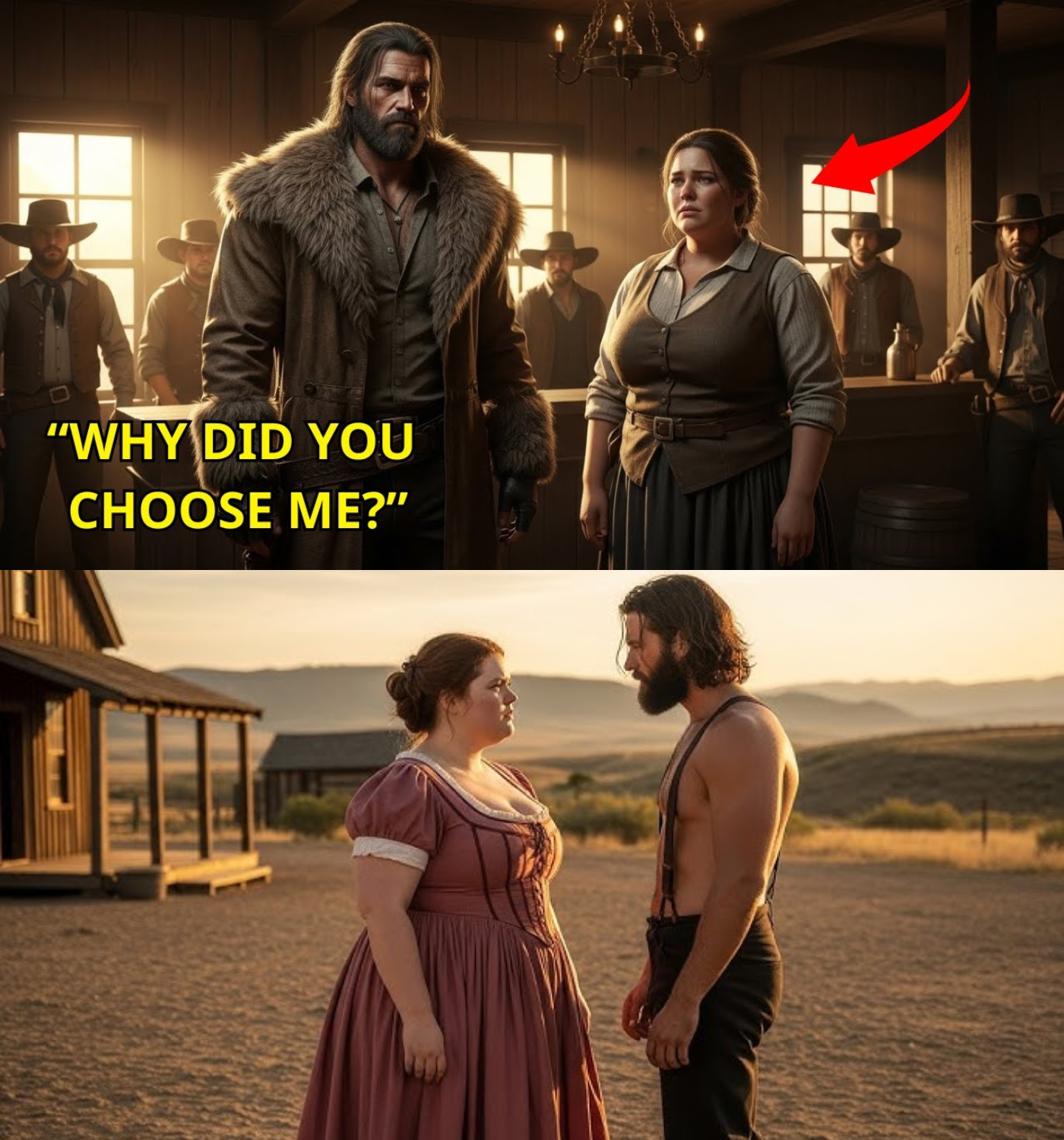 Gasps rippled through the crowd. Weatherbe’s grin faltered as the townsfolk recoiled from Jeremiah’s imposing figure. Dileia lifted her head, her heart racing as the mountain man’s shadow fell across her. For the first time, someone had chosen her, not for her looks but for something deeper.