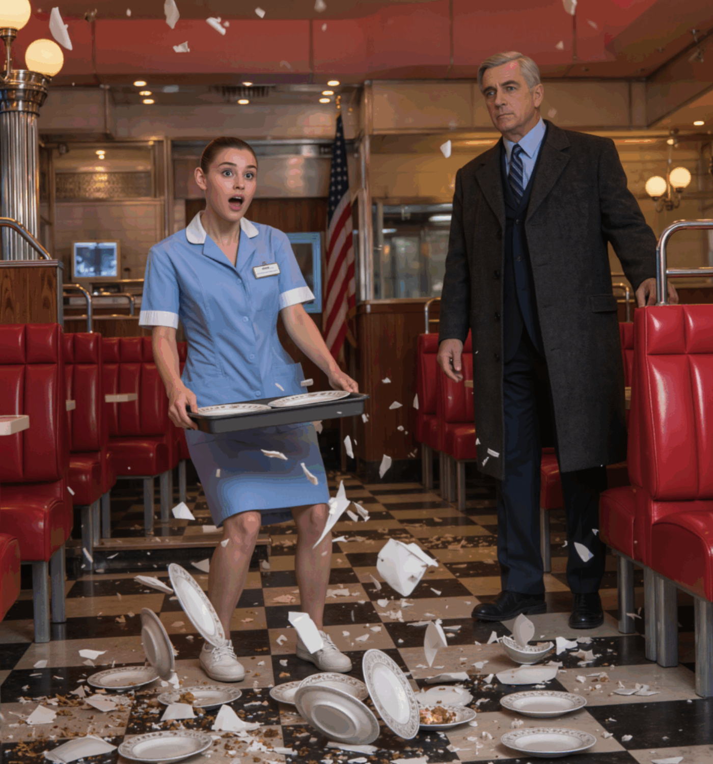 When he called her name, she dropped the tray, shattering plates across the floor. The manager’s angry shouts filled the air, but Clare dropped to her knees, desperately trying to pick up the shards with her bare hands, her cheeks flushed with embarrassment.