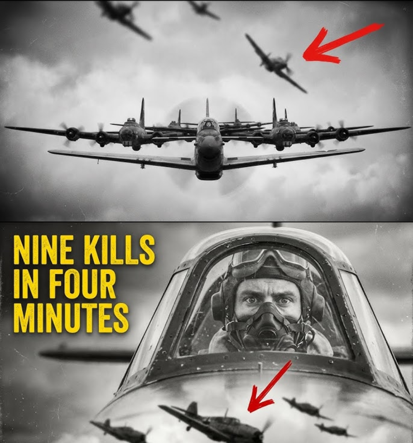 As Howard’s fuel gauge dipped dangerously low, he knew he had to make a choice. The German fighters began to disengage, recognizing that their attempts were futile against the lone Mustang that had turned the tide. They retreated, leaving the bombers intact, and Howard watched them go, feeling a wave of relief wash over him. He had done the impossible.