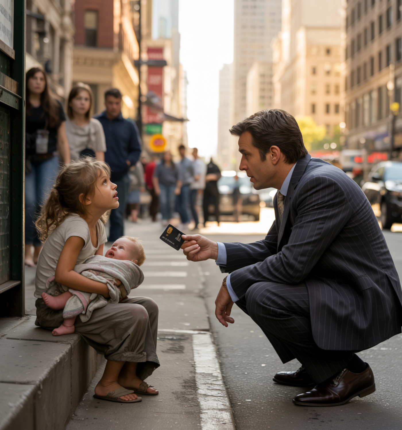 “Please, sir,” she whispered, her voice barely audible above the din, as a man in an expensive suit walked past. “I’ll pay you back when I’m grown up. I just need a small box of milk for my brother. He’s hungry.”