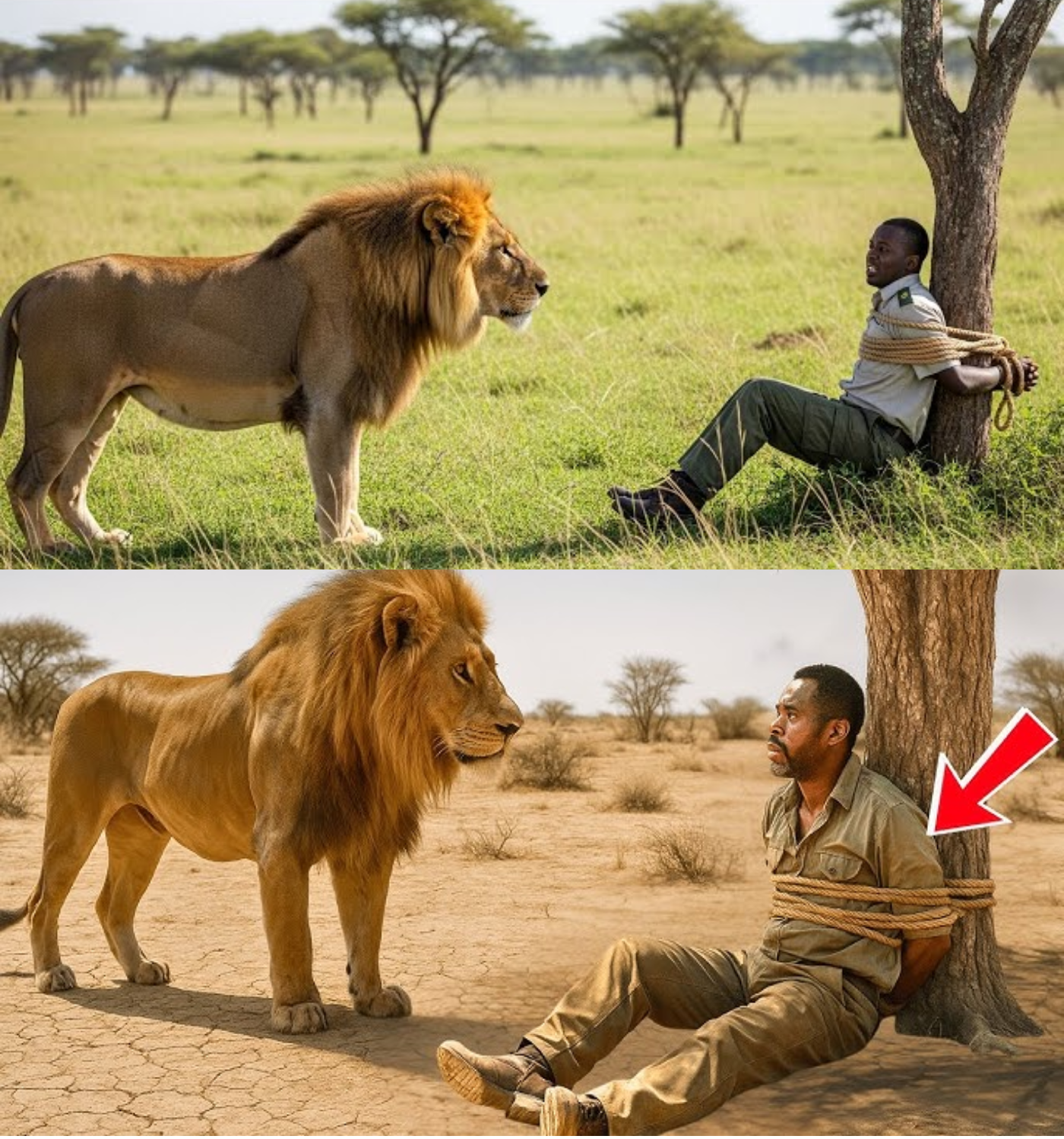 Lion Finds Ranger Tied in the Savannah, What Happened Next Shocked Everyone!