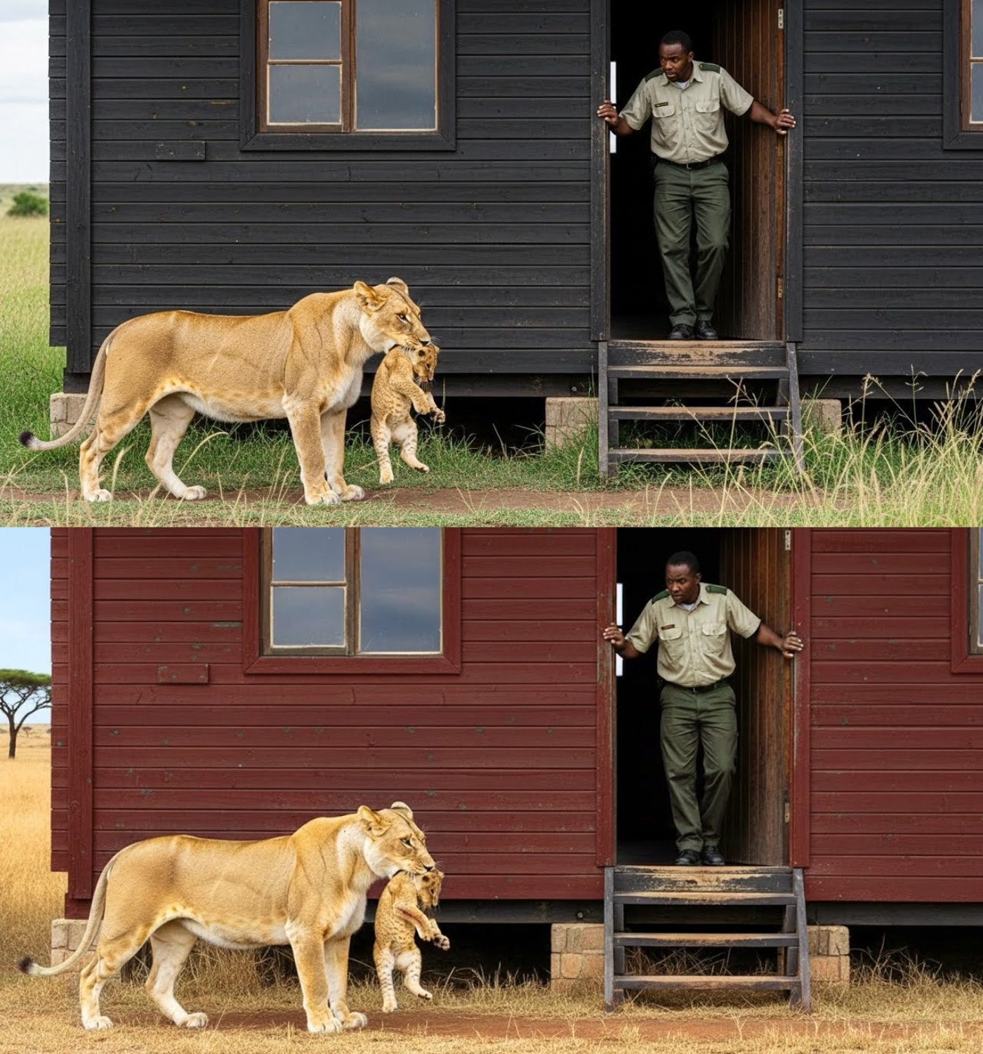 As the lioness crossed the green grass, past the scattered acacia trees, Alex stood frozen in his doorway. His instincts screamed at him to retreat, to remember the dangerous line that should never be crossed. Yet, as the lioness lowered her head and gently placed the cub at his feet, something shifted within him. The sight of her wide, pleading eyes shattered his training and filled him with a profound sense of duty.