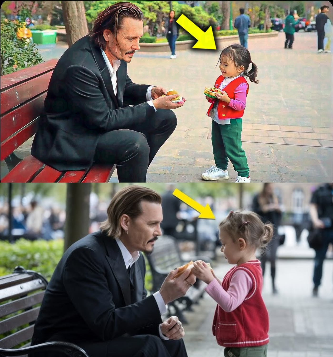 In that moment, Johnny Depp, the man sitting on the bench, blinked in disbelief. He felt as if she had just handed him the world. For Johnny, who had been battling personal demons and public scrutiny, that small act of kindness was a crack in the walls he had built around himself. He didn’t know this little girl or why she had noticed him, but her simple gesture reminded him of humanity he had almost forgotten. A small, genuine smile tugged at the corners of his lips. “Thank you,” he murmured, accepting the sandwich with both hands.