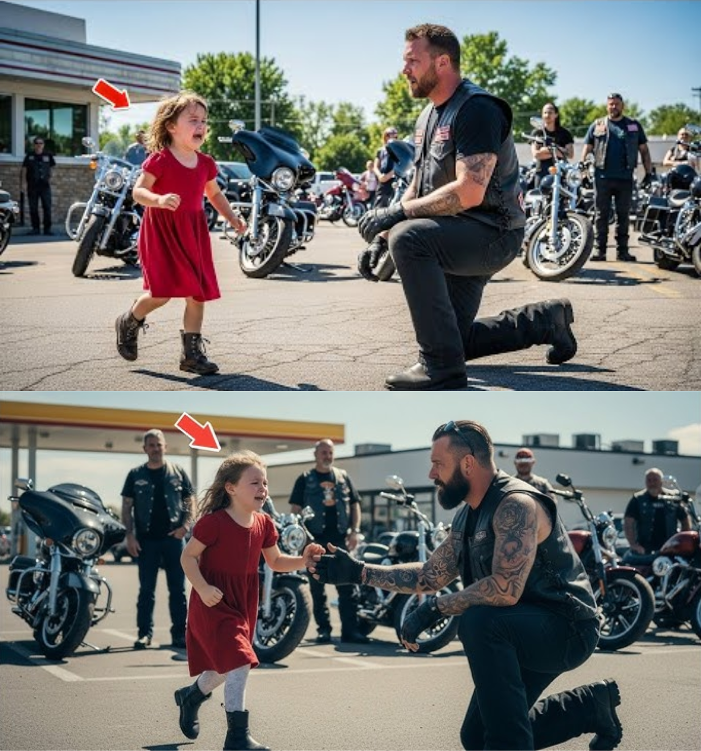 Mason Cole, a broad-shouldered biker in his late thirties, knelt down to steady the trembling child’s hands. His leather jacket bore the red and white emblem of the Hell’s Angels. He had seen plenty in his life—fights, betrayals, blood—but never a child in such distress. “Where’s your mama?” he asked gently, his deep voice softened by concern.