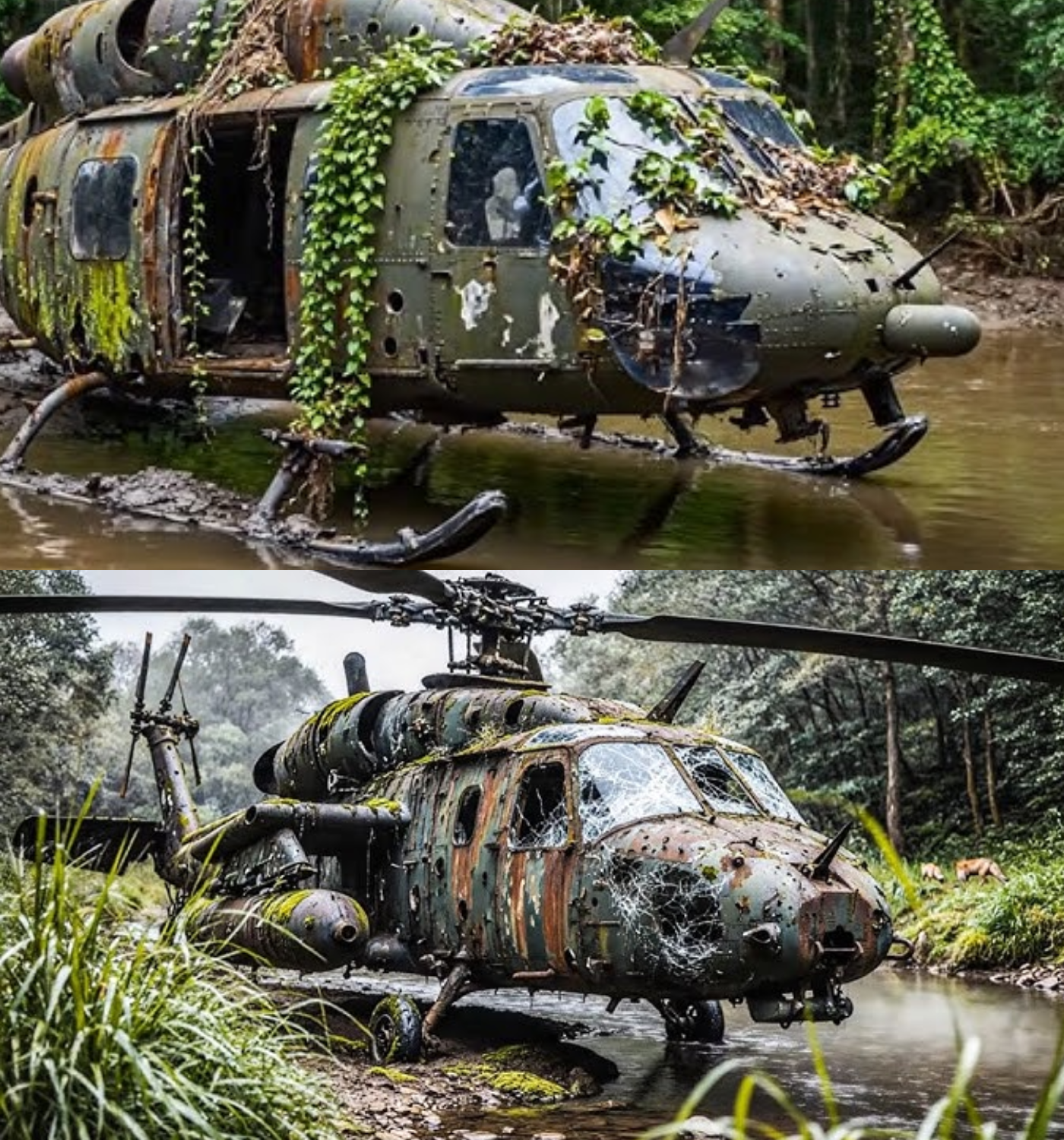 For decades, the locals spoke of the “ghost helicopter” hidden deep within the jungle. It became a legend, a tale told around campfires, capturing the imaginations of adventurers and dreamers alike. The helicopter, once a machine of might, was now a relic, a haunting reminder of what had been. It stood silent, its fuselage weathered, paint peeling, and rotors rusted, yet there was something undeniably majestic about it—something that whispered of its past glory.