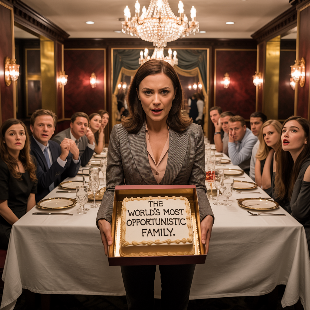 “I’d like your biggest, most expensive cake, please,” I said, a mischievous grin spreading across my face. “And put it in a box. Write on it: ‘The world’s most opportunistic family.’”