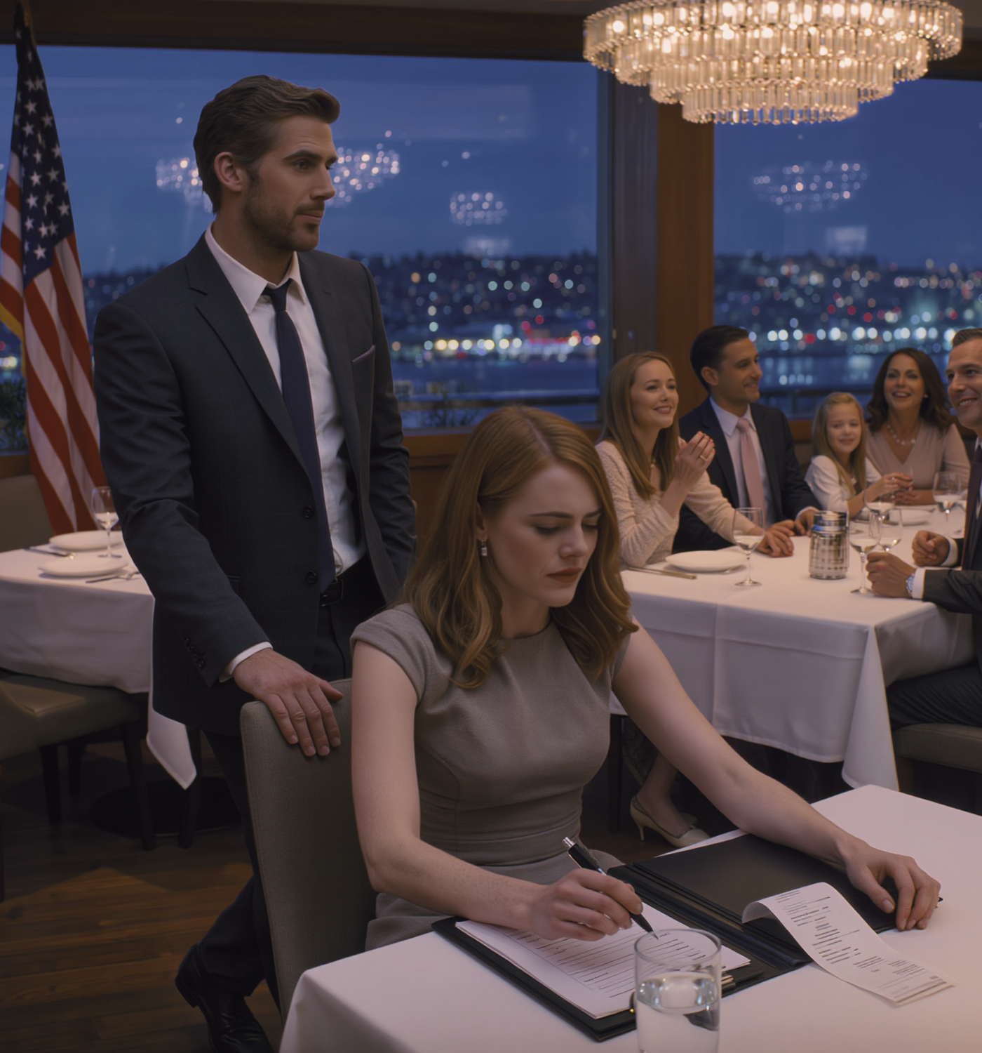 In that moment, I almost did what I had always done: smiled, swallowed the hurt, and paid. But instead, I felt a familiar presence behind my chair. The chair scraped against the floor as Julian stood tall, his voice calm and steady, yet loud enough for the entire table to hear: “Just a moment, please. You might want to rethink who’s really paying for what tonight.”