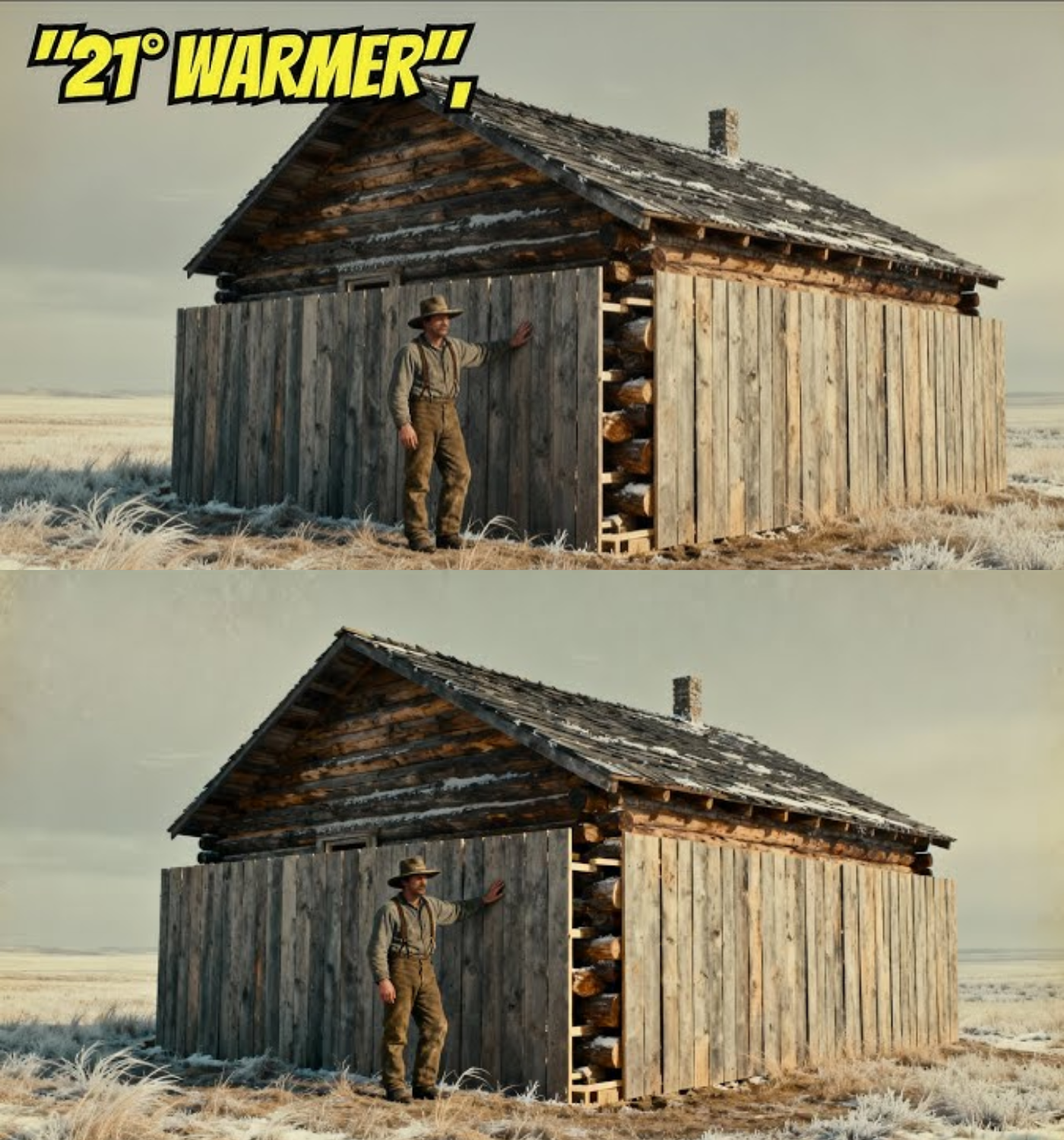 But in Olsen’s cabin, the story was different. While his neighbors shivered and fought to maintain warmth, Olsen’s innovative double wall construction proved its worth. The outer layer absorbed the storm’s force, while the air trapped between the walls created an insulating barrier that kept the interior warm. Each morning, when his neighbors emerged to face the bitter cold, Olsen recorded the temperature inside his cabin—a consistent 21 degrees warmer than theirs.