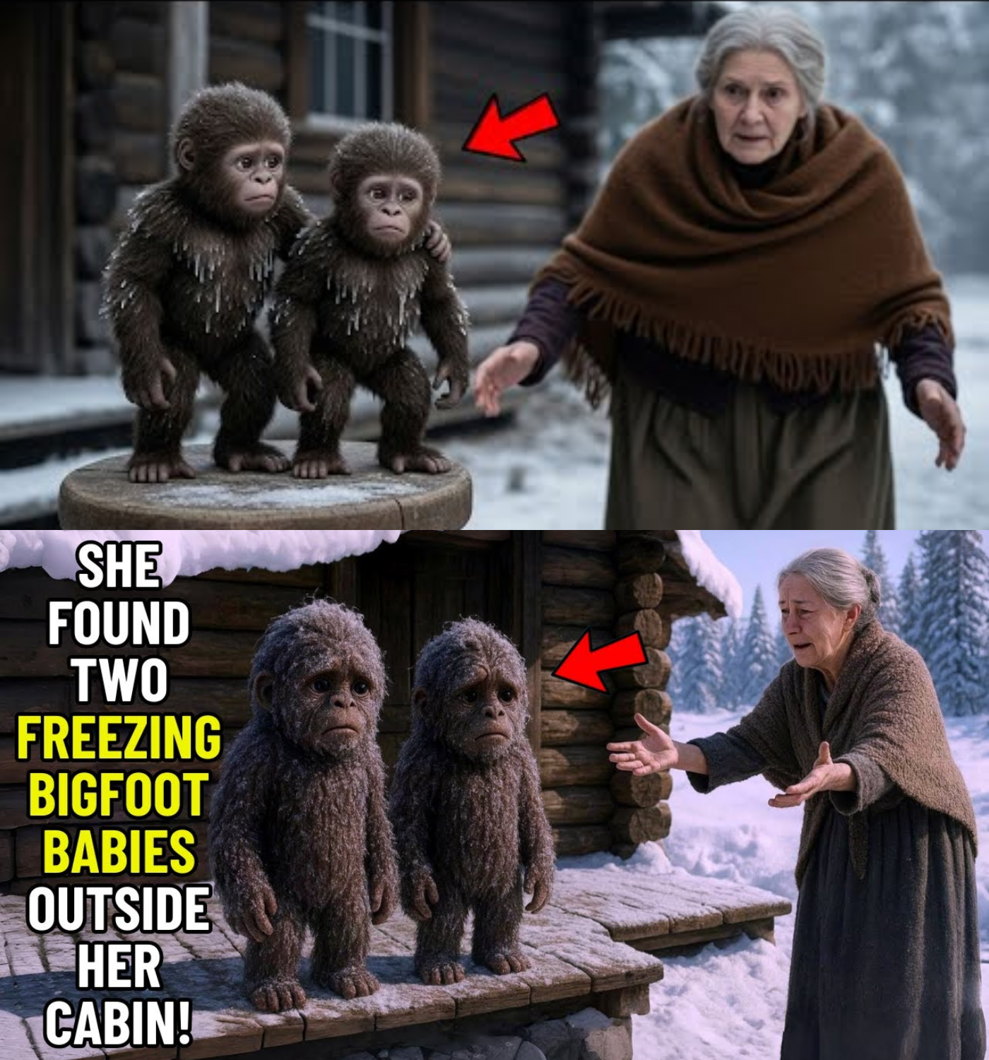 Old Woman Takes In 2 Freezing Baby Bigfoots—The Next Day, a Whole Tribe Stood at Her Door