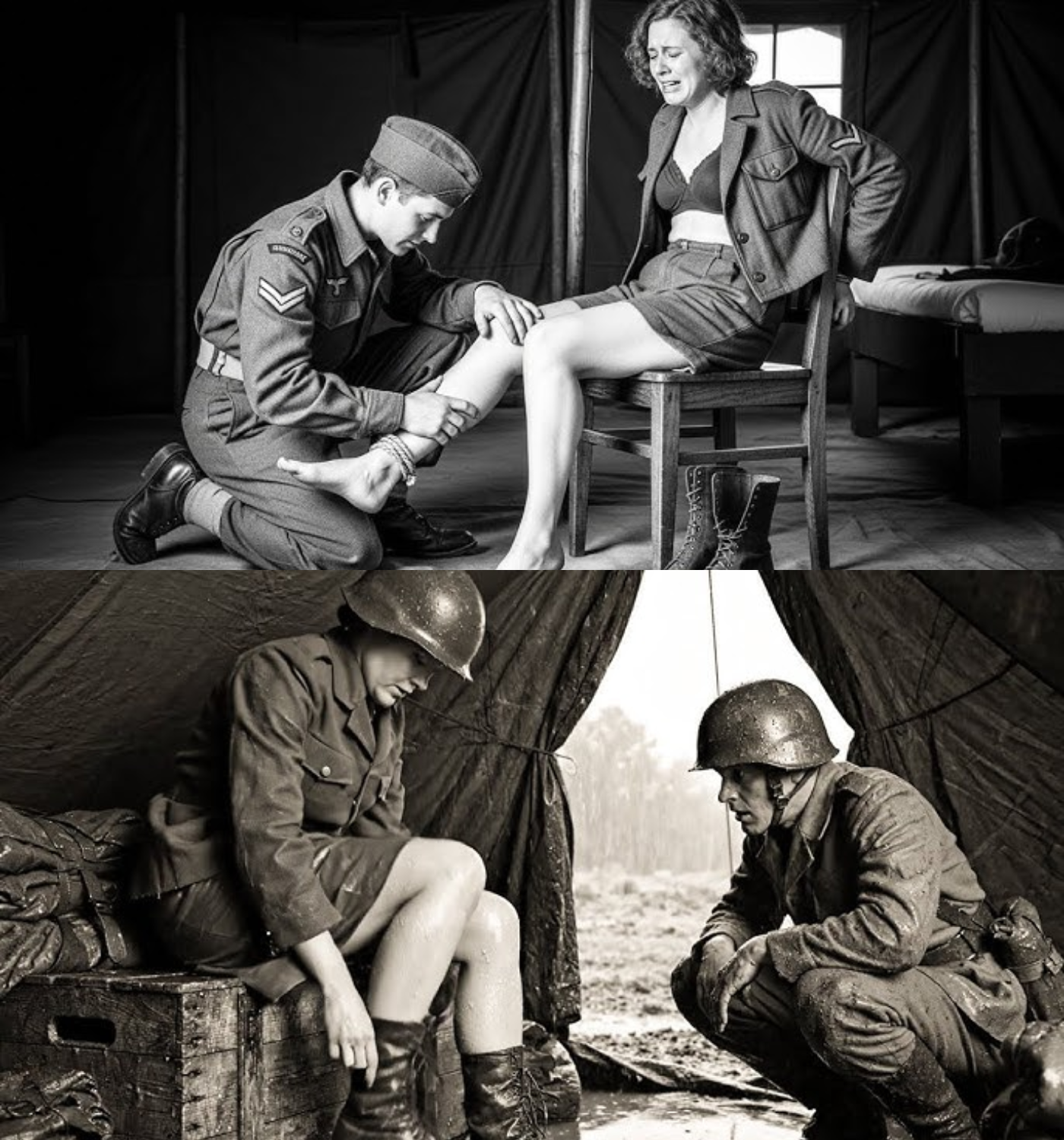 Helga, still reluctant to reveal her own injuries, observed the scene in horror. She felt the pressure of her own pain but was determined not to show weakness. When she finally complied and removed her boots, the sight was devastating. Pieces of glass were embedded in her foot, remnants of a shattered window she had stepped through weeks earlier. As the medics carefully extracted the shards, Helga was surprised to see tears streaming down Private Miller’s face.