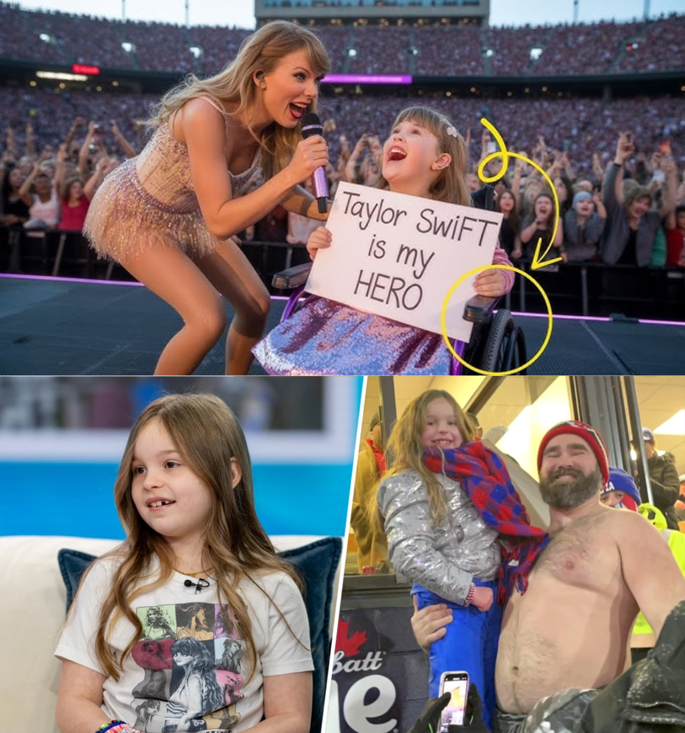 Stuck in traffic, Travis Kelce saw a little girl in a wheelchair with a homemade sign — Minutes later, 80,000 Taylor Swift fans were in tears at a moment no one expected that night at Arrowhead Stadium.