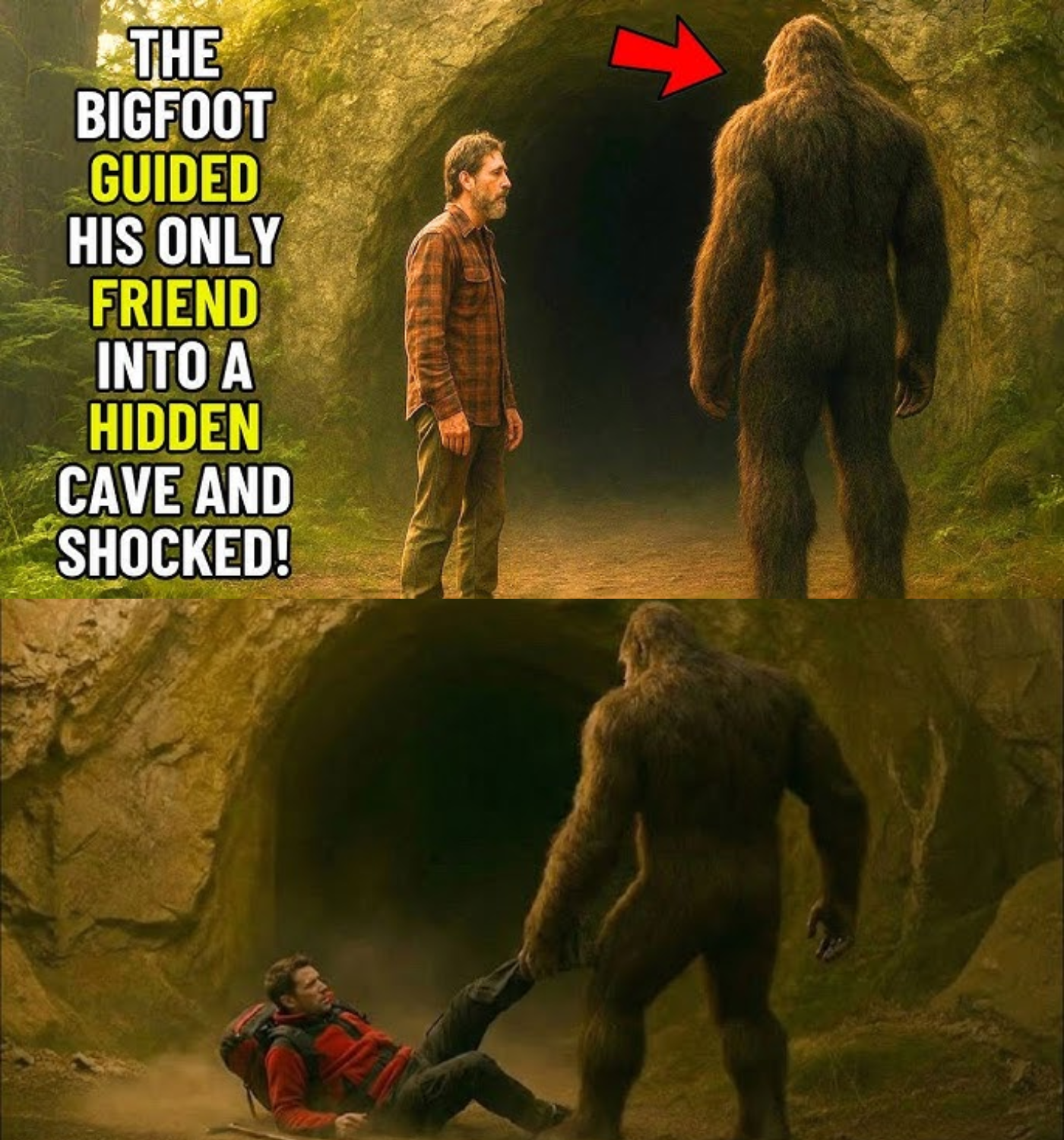 The Bigfoot guided his only friend into a hidden cave, and when he entered, he was shocked.