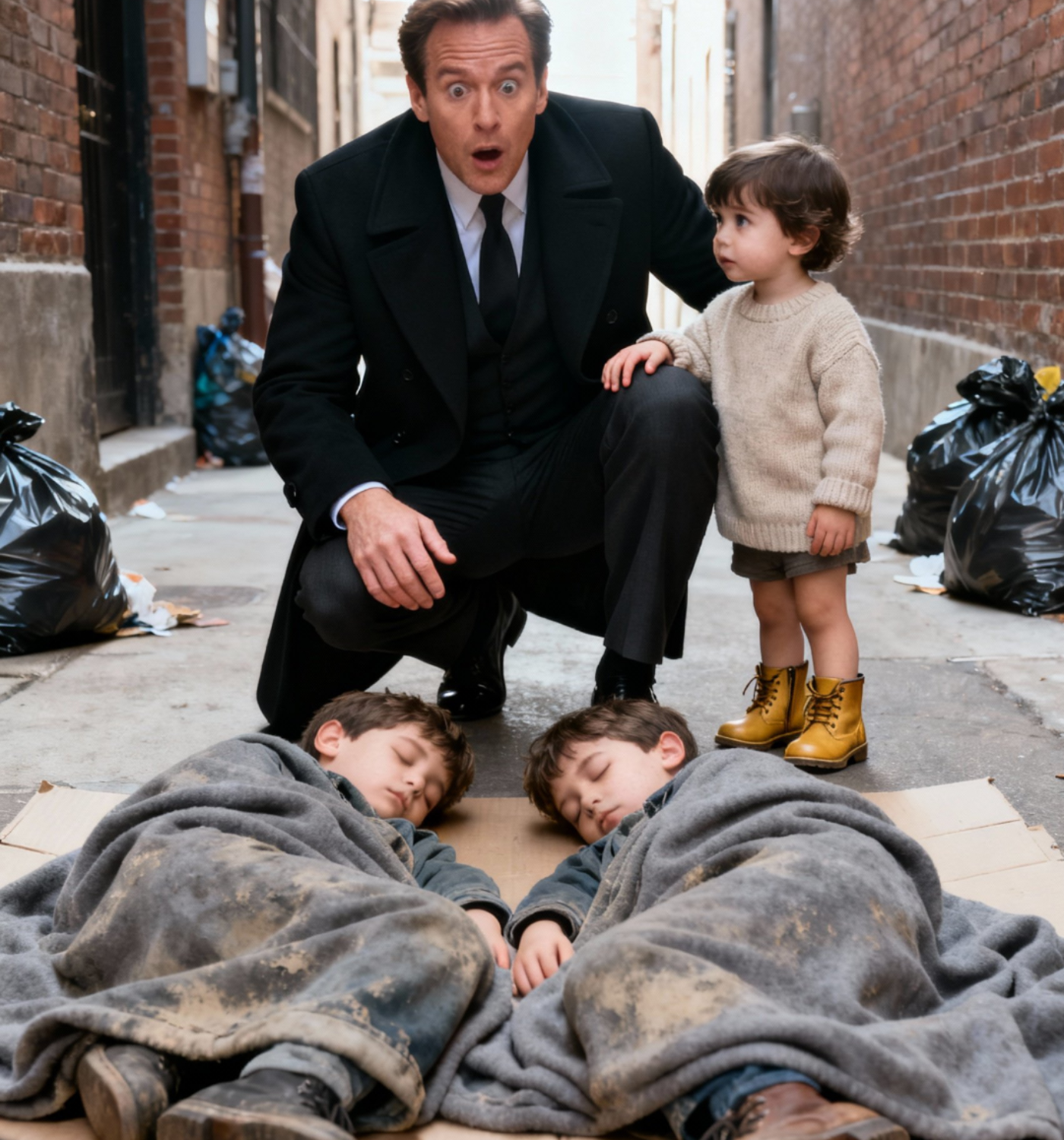 “Dad… those boys sleeping by the dumpster… they look just like me,” Caleb whispered, his innocent voice breaking the heavy silence. His tiny hand pointed toward the boys, and I felt a chill run down my spine.