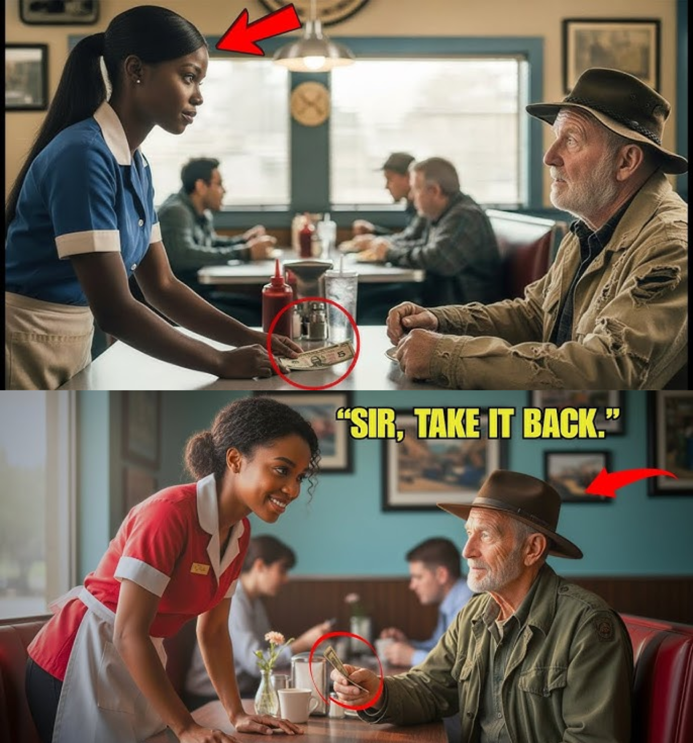 When Henry finished eating, he stood slowly, leaving a crumpled $5 bill on the table. For Naomi, that $5 represented so much more than just money. It meant bus fare, part of her rent, and medicine for her young daughter. As she picked it up, the room seemed to hold its breath. But instead of keeping it, she pressed it gently back into his palm. “I can’t take this,” she said softly. “In my space, guests don’t pay for kindness.”