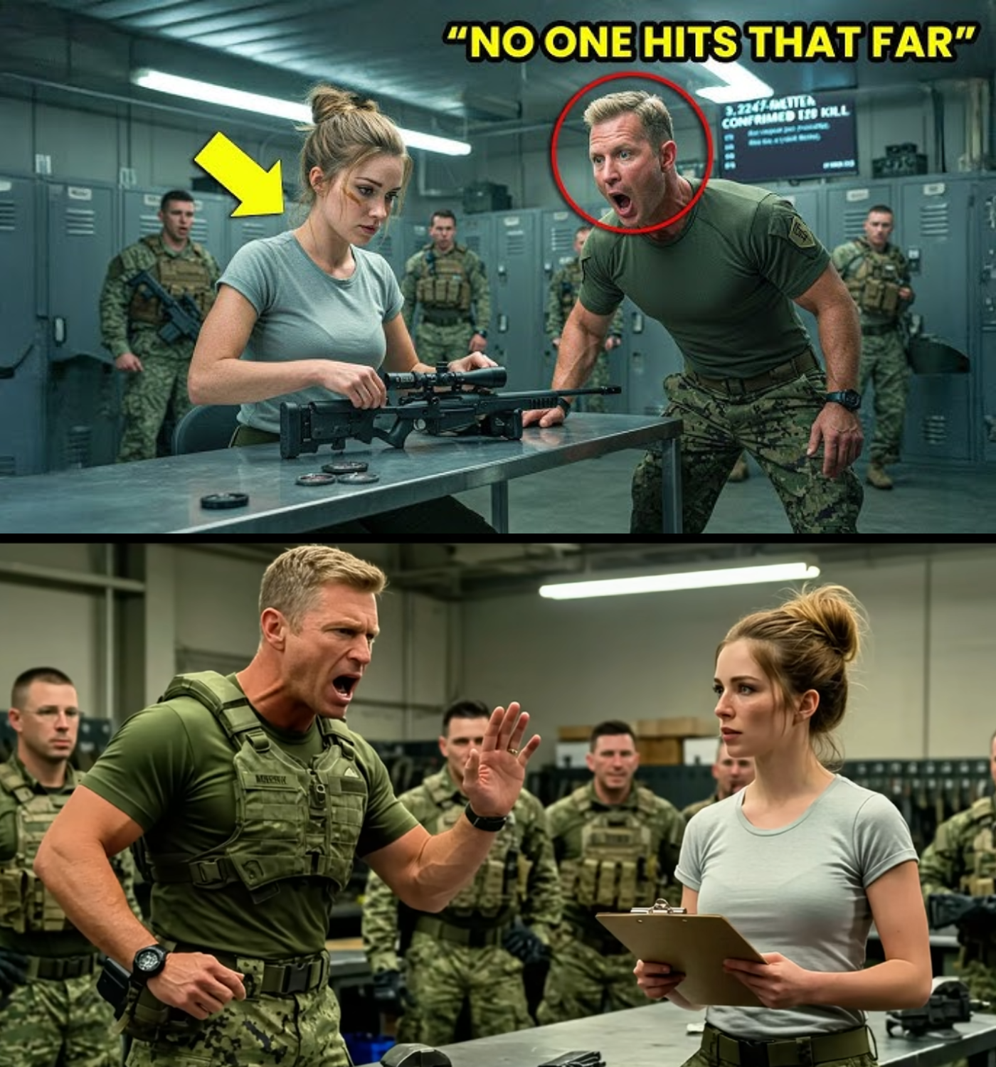 In the heart of Coronado Naval Amphibious Base, the air was thick with tension as Commander Rick Morrison’s voice echoed through the Navy SEAL armory. He had just discovered a woman, Madison Parker, kneeling beside a Barrett .50 caliber rifle, her delicate hands moving with an expertise that belied her appearance as a maintenance worker. The SEALs around them stopped, intrigued by the confrontation unfolding before them.