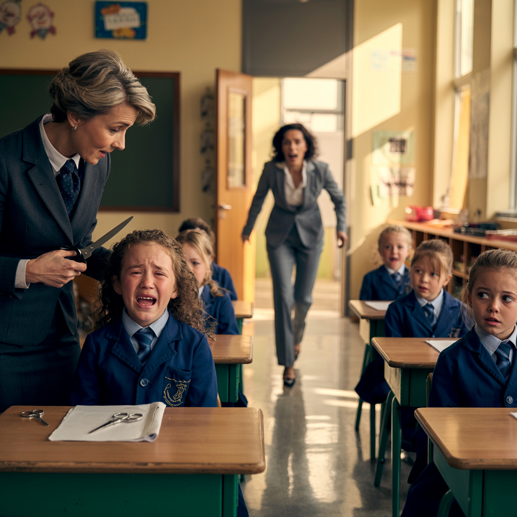 “Your hair needs to be neat!” she declared, and before Lily could react, she snipped away at the girl’s curls, leaving uneven strands behind. Gasps echoed around the room, and one student discreetly recorded the incident on their phone, knowing it would be shared beyond the classroom walls.