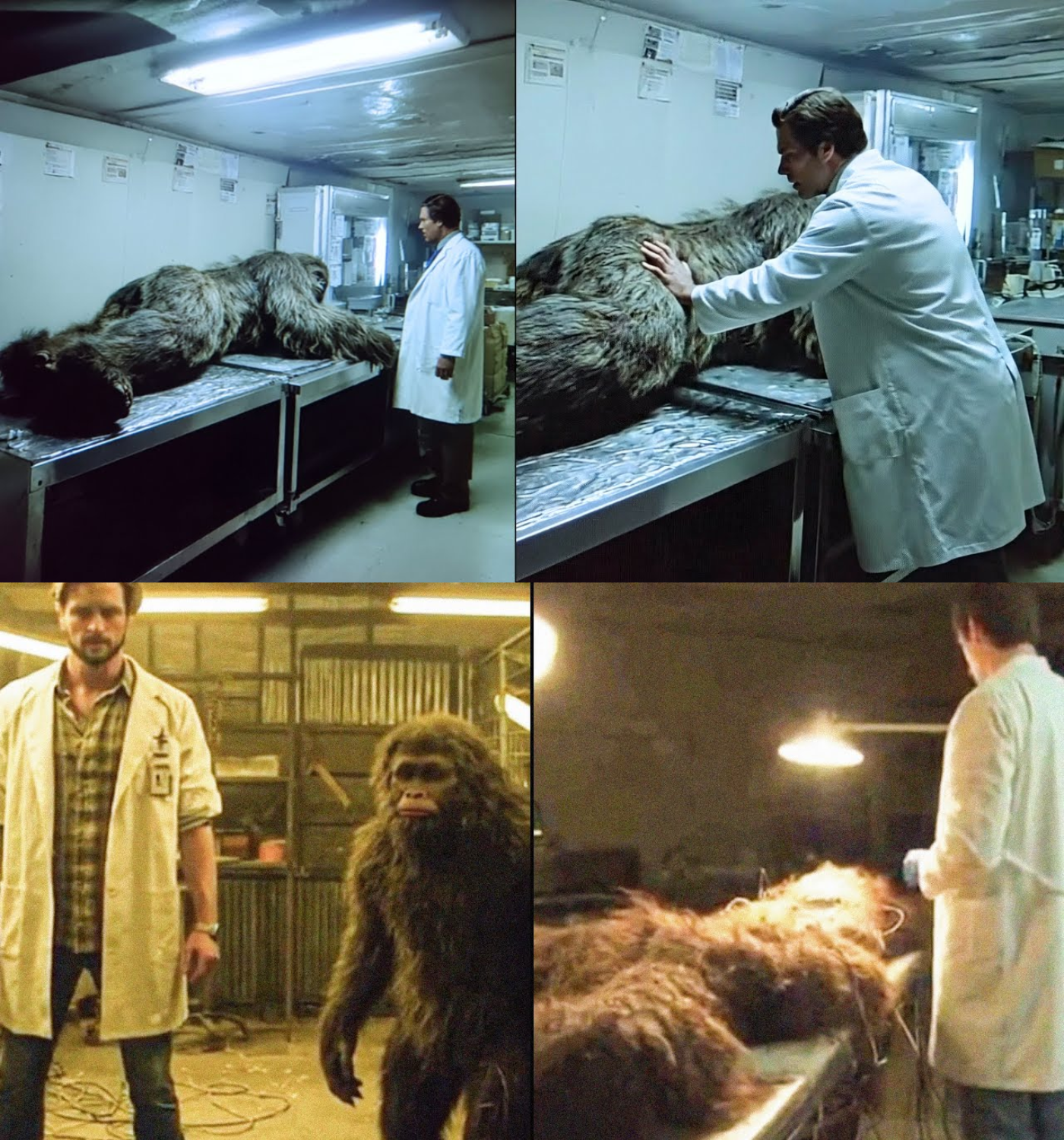 As I hurried to the surgical suite, my heart raced with anticipation. Upon entering, I was met with a sight that froze me in my tracks. On the examination table lay a massive, hairy creature, easily eight feet tall, covered in dark brown fur matted with blood and dirt. The face was both familiar and alien, with a heavy brow ridge and a broad nose. “Is that…?” I stammered, unable to finish my thought.