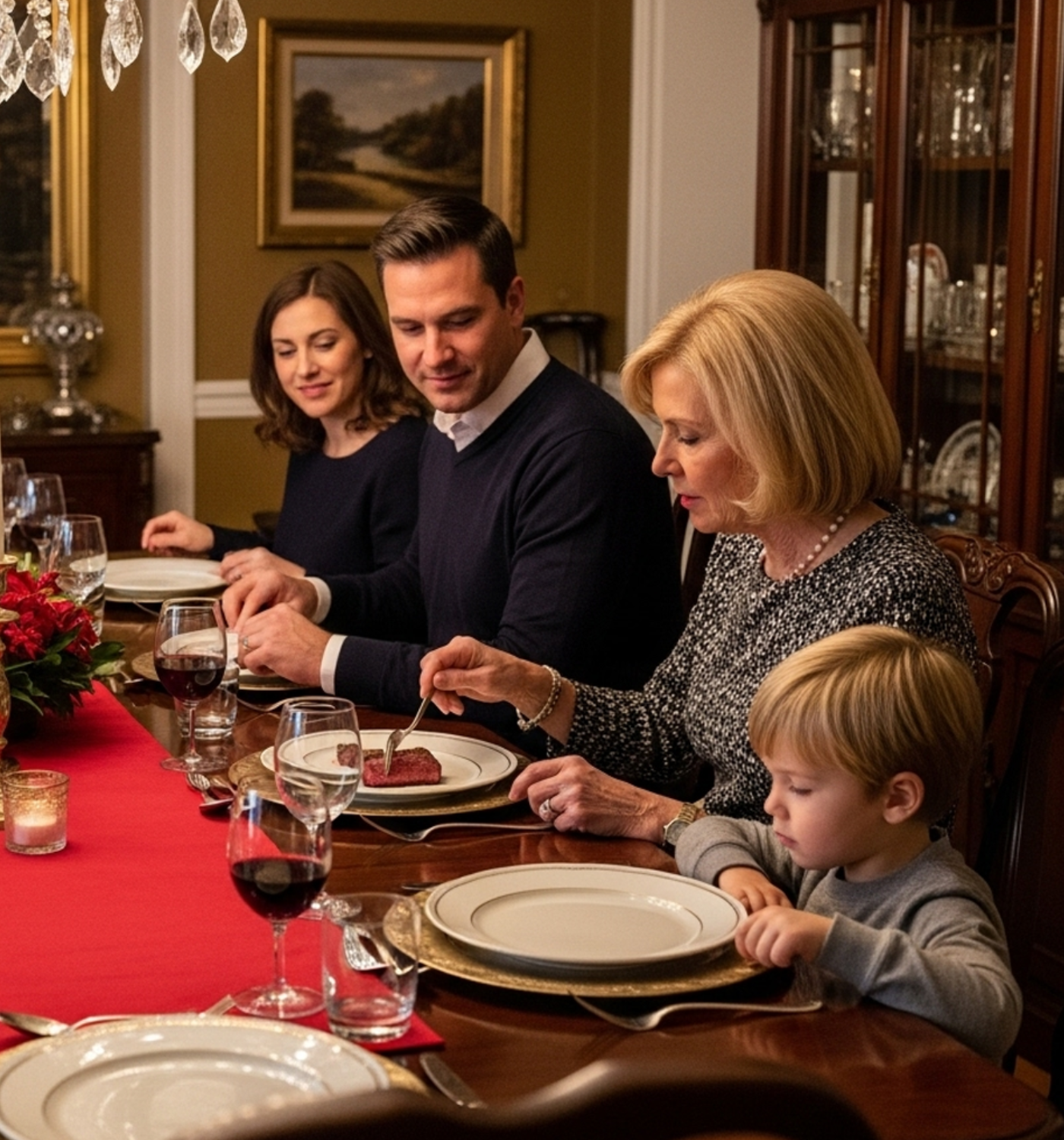 Christmas Eve had always been a grand affair in our family, a time when my mother transformed our home into a festive wonderland. The chandelier sparkled above the dining table, which was adorned with eight flawless plates, each meticulously arranged. Prime rib glistened under the warm glow of candlelight, and the sides were artfully displayed as if they were part of a magazine spread. My mother thrived on this perfection, her reputation tied to the success of our holiday gatherings. But that evening, amidst the festive splendor, a dark cloud loomed over our celebration.