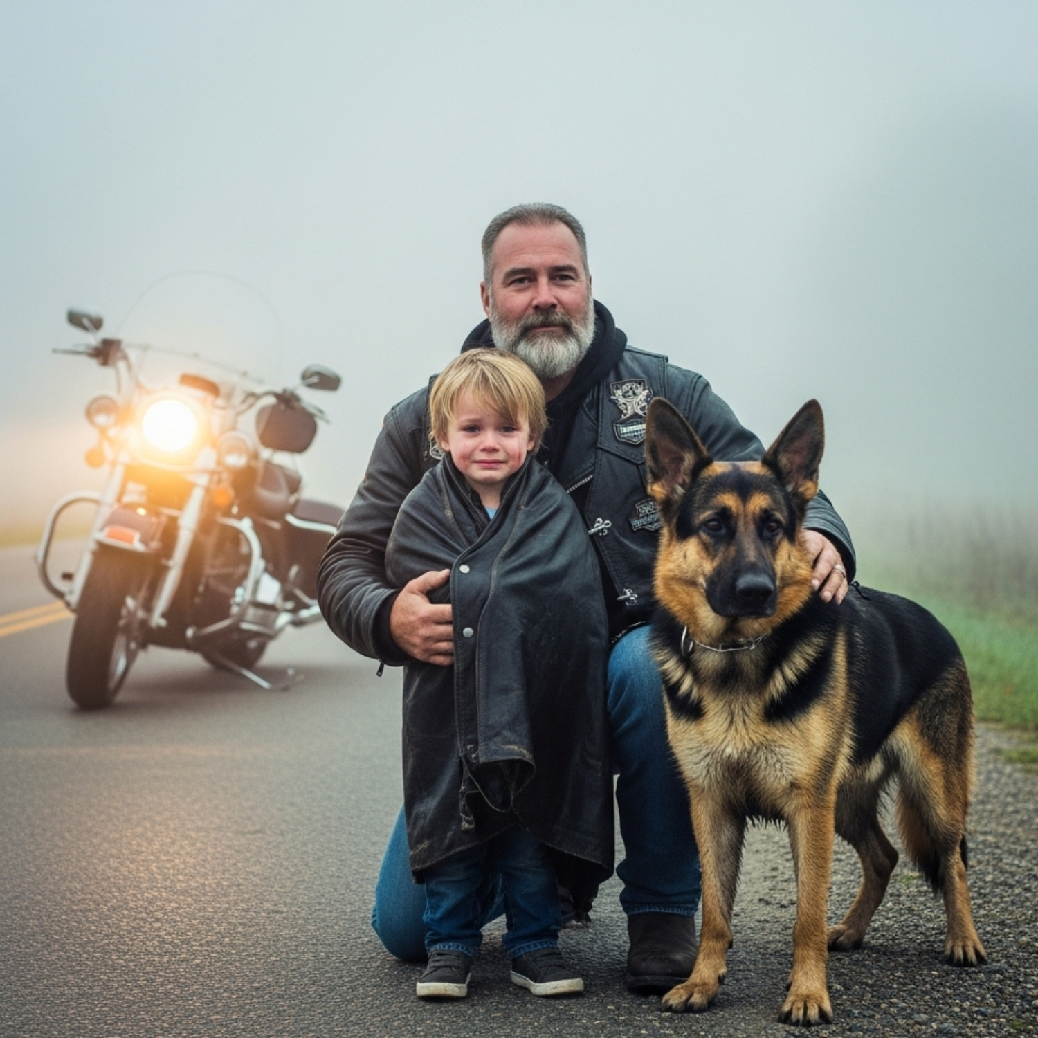 A Biker Riding at Midnight Saw a Dog Guarding a Lost Boy — What He Discovered After Calling the Police Made the Whole Town Cry.