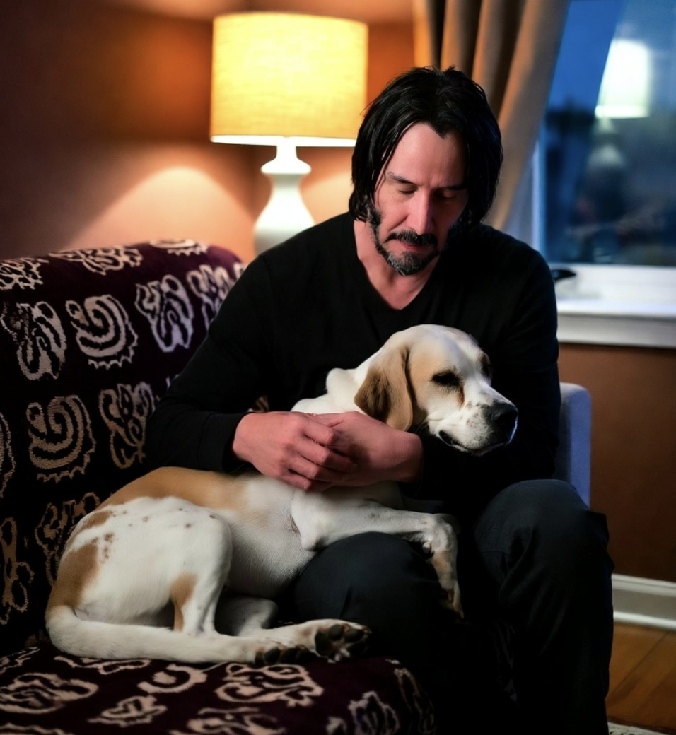 Keanu Reeves, a man millions adored but few truly knew, held the frail creature the way one might cradle a newborn—carefully, tenderly, like something unimaginably precious. The dog wasn’t even his, not really. He had adopted him only three days earlier. Yet at that moment, their bond felt older than memory, older than fear, older than the long chain of grief that had followed Keanu through life like a shadow.