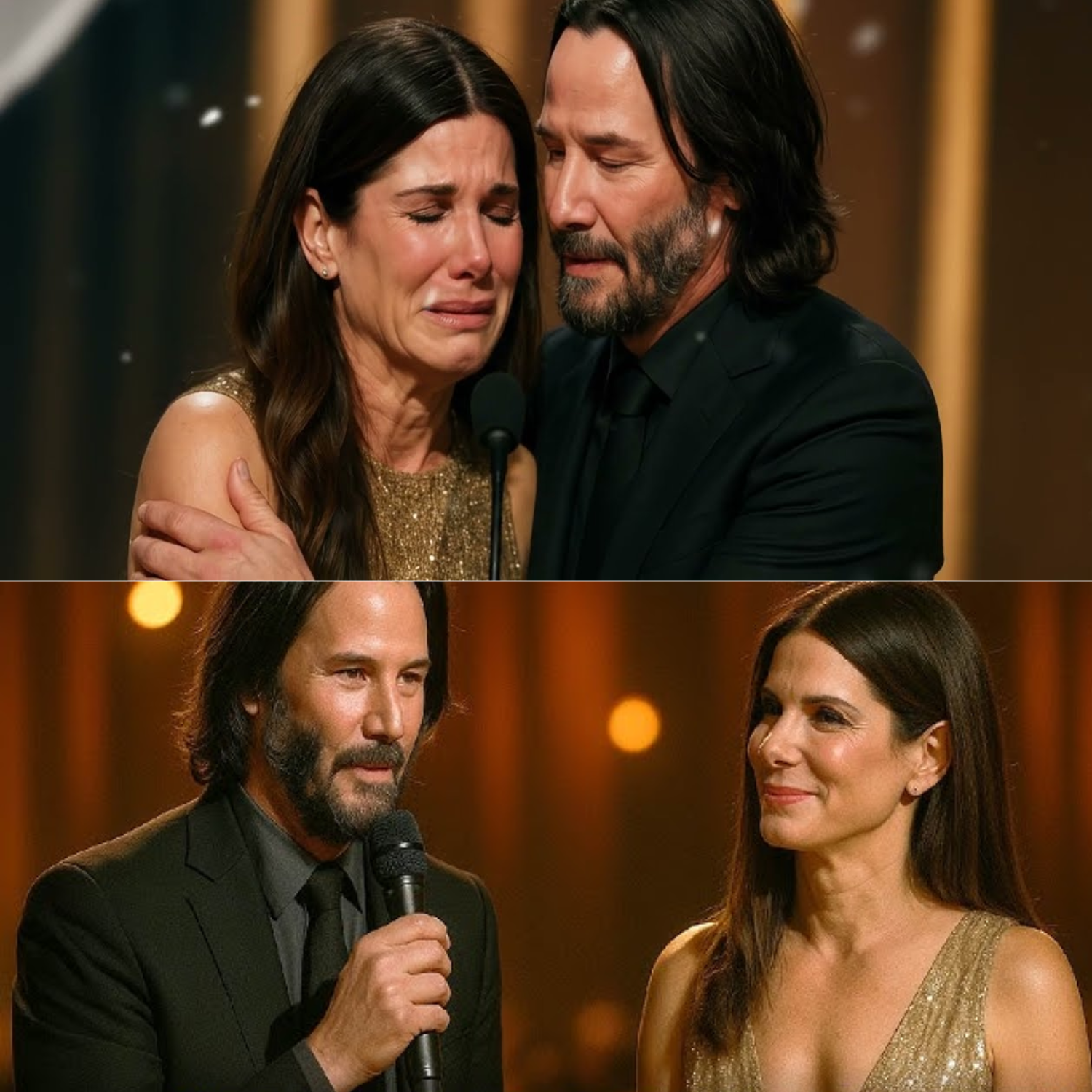 Sandra Started Crying On Stage — Keanu Reeves Stepped Forward and Hugged Her