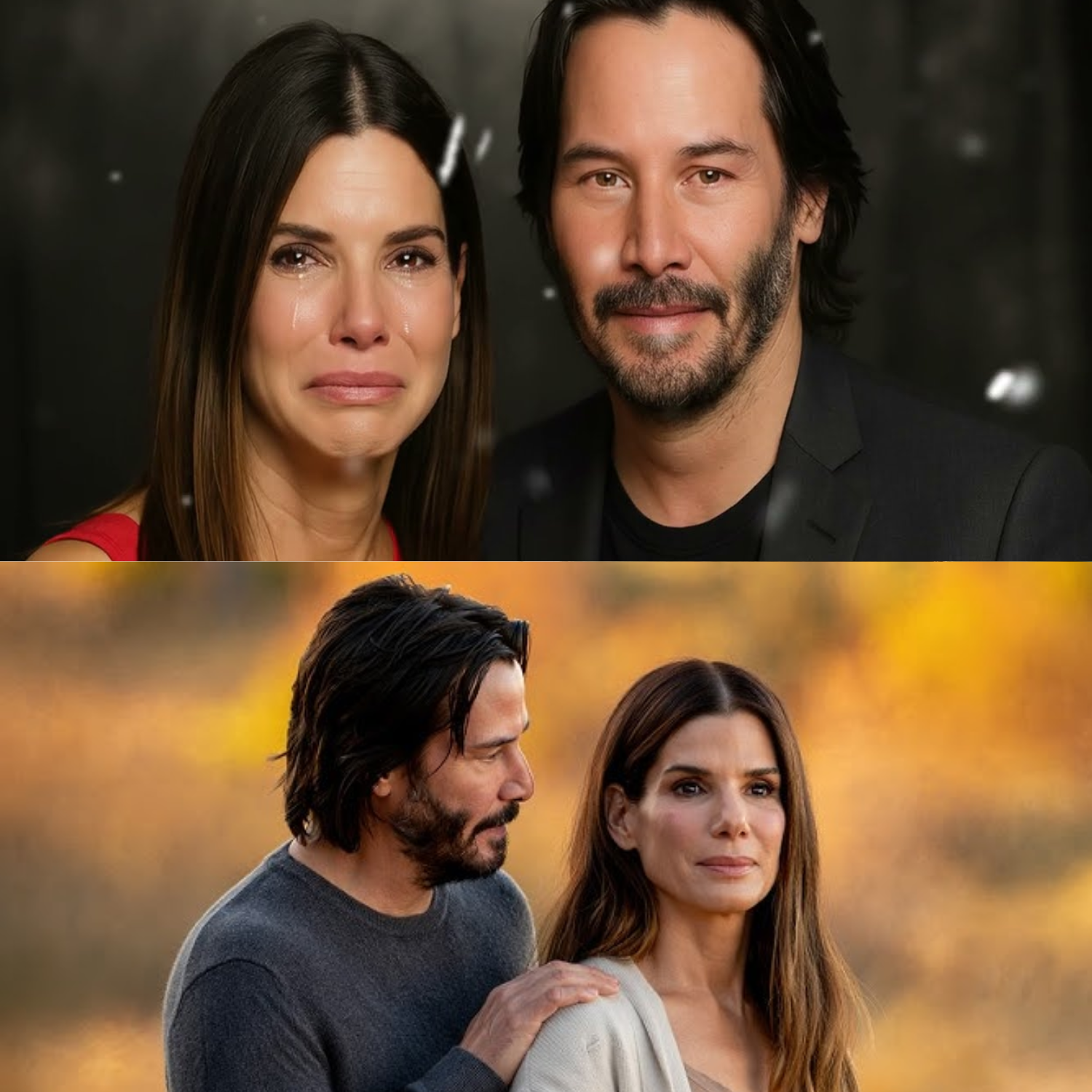 The night was warm, but beneath the glow of flashing cameras, the air felt sharp — the kind that carries both beauty and secrets. Sandra Bullock stepped onto the red carpet with that calm, timeless smile the world knew so well. Behind her, Keanu Reeves followed quietly, his gentle nods and shy smile masking something far deeper than anyone could guess.