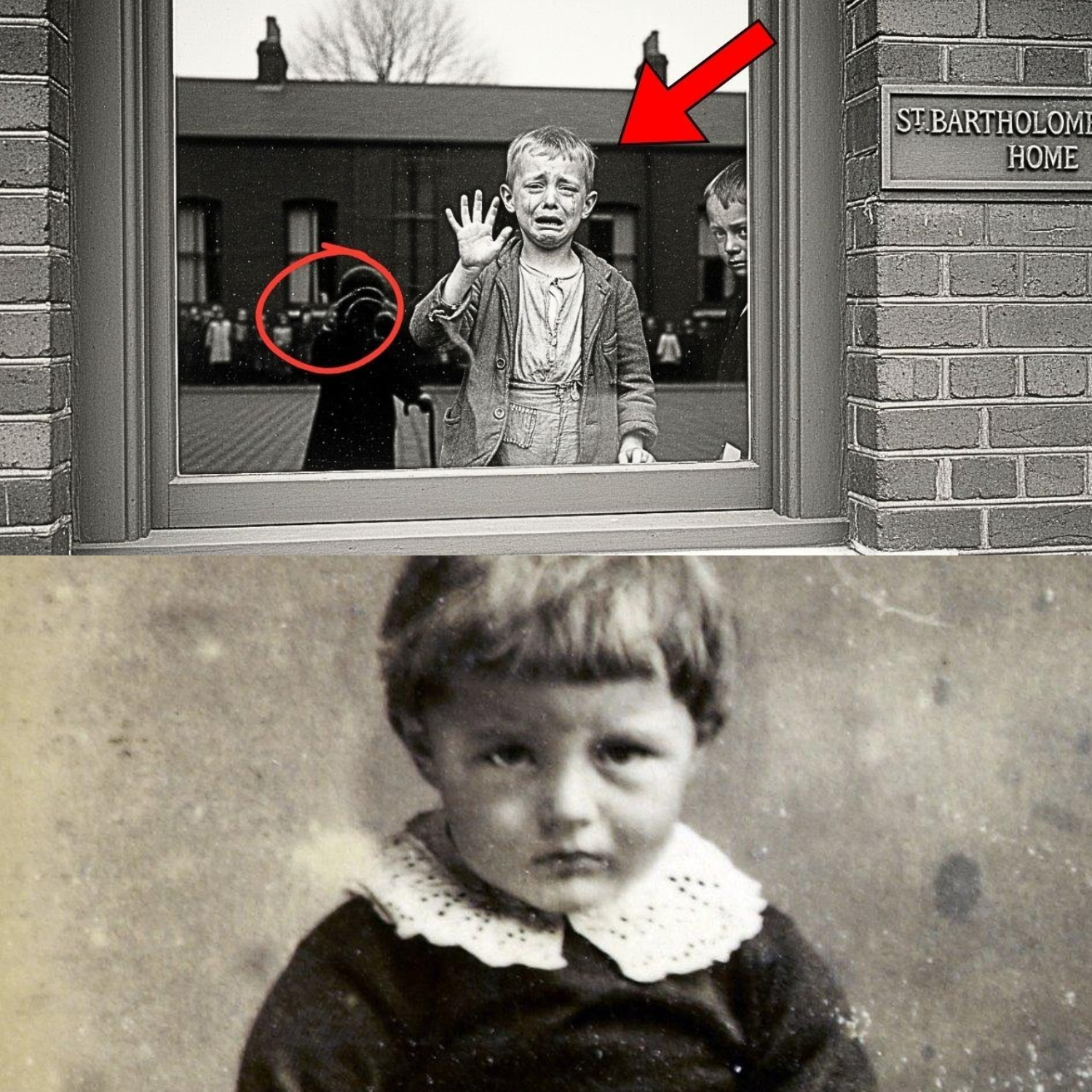 In the bitter chill of a London autumn, a small boy stood alone in front of a towering brick building. His coat hung off his frail shoulders like a sail in a storm, trousers rolled up at the ankles, bare feet shivering against the cobblestones. His hair was unevenly cut, his face smudged with dirt, and in his small, trembling hand, he pressed against the cold windowpane. To anyone looking casually, he appeared to be waving, smiling, perhaps greeting a passerby.
