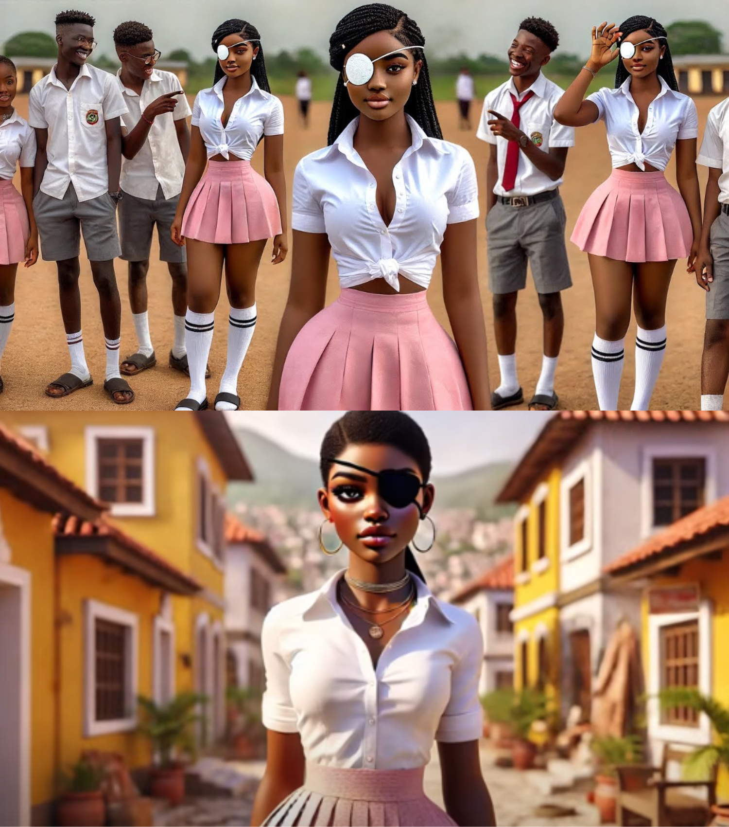 In a small town where dusty roads met the hum of daily life, lived Amarachi, a girl unlike any other. A jagged scar ran from her forehead to her cheek, a remnant of a childhood accident no one dared mention. She hid it beneath an eye patch, but whispers followed her like shadows. Her father, a mechanic with oil-stained hands and a heart of gold, would cup her face gently. “Beauty isn’t in the face, my child,” he’d say. “It’s in the heart.” He toiled over broken engines so she could chase dreams at school, but there, hearts seemed blind.