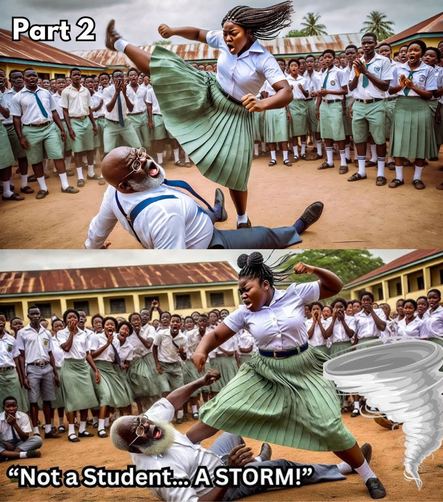 Whispers spread that Amina had fled, but they were wrong. A week later, she strode through the school gates, head high, jaw tight, the air shifting in her wake. Students froze; teachers held their breath. Amina wasn’t back to learn—she was here to wreak havoc. She ignored assignments, dismissed teachers like ghosts, and walked the halls like a lioness, daring anyone to challenge her. The school descended into chaos. Parents pulled their children out, and teachers fled, fearing her wrath. Amina had become a threat, unstoppable.