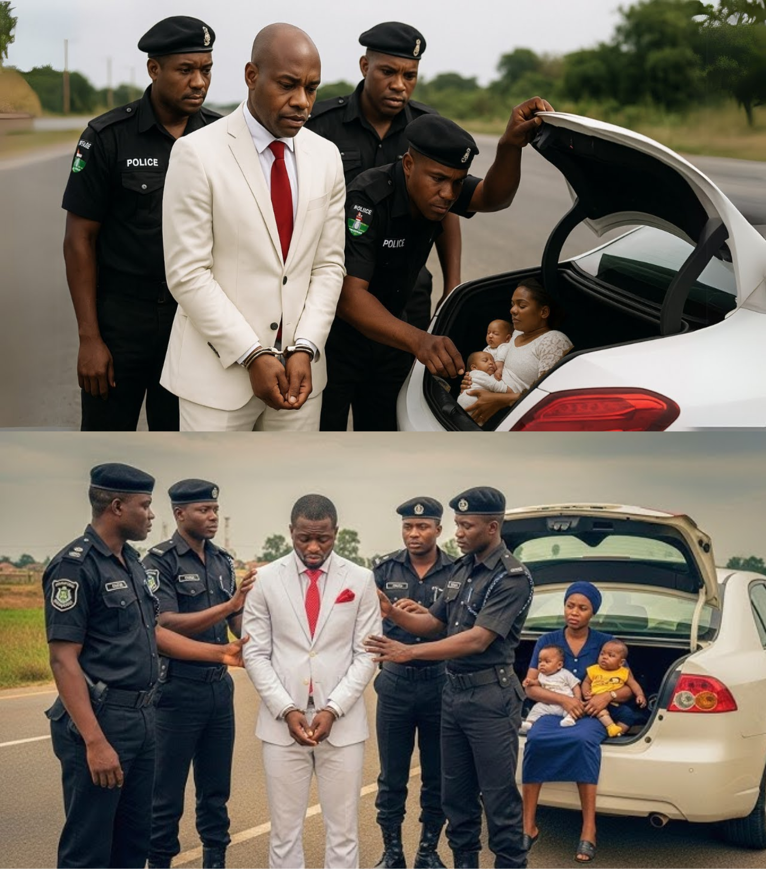 On a rainy Thursday in Port Harcourt, police flagged down Pastor Enoch David’s sleek black Prado Jeep after an anonymous tip. The man who stepped out, dressed in a pristine white suit and red tie, was no ordinary figure. As the general overseer of Holy Fire Dominion Chapel, Enoch was beloved—known for scholarships, rent payments, and gentle prayers. Yet, when officers demanded to inspect his boot, his charm faltered. Offering a stack of foreign currency, he pleaded, “Let me go and do God’s work.” The officers refused, and upon opening the boot, they found two fresh, bleeding human heads wrapped in cloth. The crowd erupted in horror as the truth emerged: the heads belonged to Enoch’s daughters, Chisaram and Deborah, whom he claimed were studying in Canada.