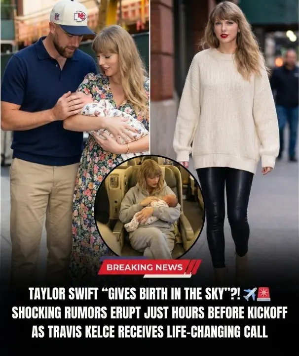 In this fictional telling, what unfolded at 30,000 feet became one of the most jaw-dropping stories sports and pop culture could imagine: Taylor Swift going into labor mid-flight while en route to watch her husband play, a cabin transformed into an emergency delivery room, and Travis Kelce receiving life-altering news just hours before kickoff.