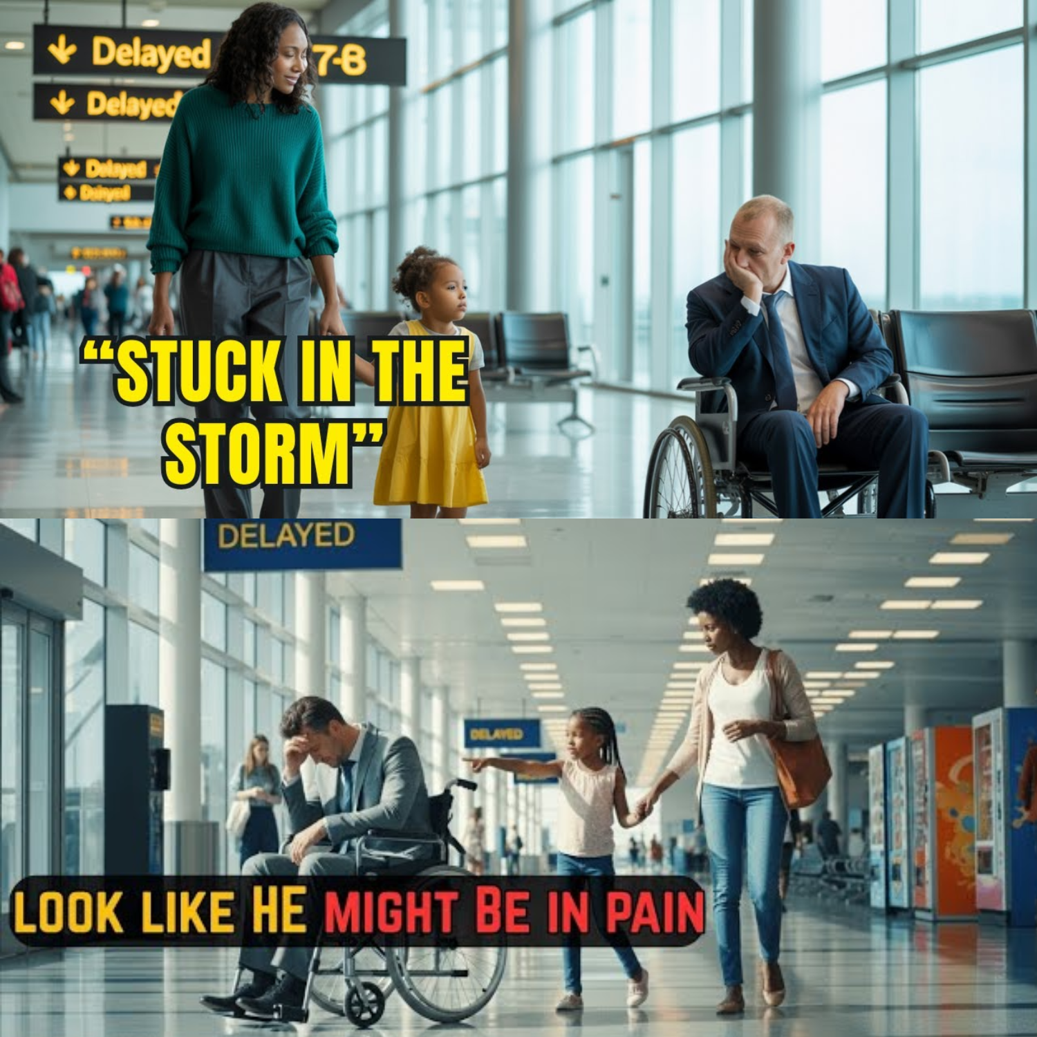 Stuck in the storm. You ever see a grown man sit alone in a crowd, and it’s like he’s the only one who’s not really there? That was me. My name’s Everett Mercer. Once the king of Silicon Valley, now just another face people avoid making eye contact with at the airport. I’ll tell you, nobody cares how much money you’ve got if you’re stuck in a wheelchair and looking a little too lost. Not your so-called friends, not your family, and sure as hell not the strangers rushing past you like you’re part of the furniture. It was raining that night. Angry drops hammering the glass. Three hours I sat at gate 17 just existing, my mind replaying every loss. My assistant quit. My board kicked me out after the accident. Every time my phone buzzed, it was another flight delay. At some point, I realized the seat on my fancy wheelchair cost more than everything the janitor owned. But nobody saw me. Not really.